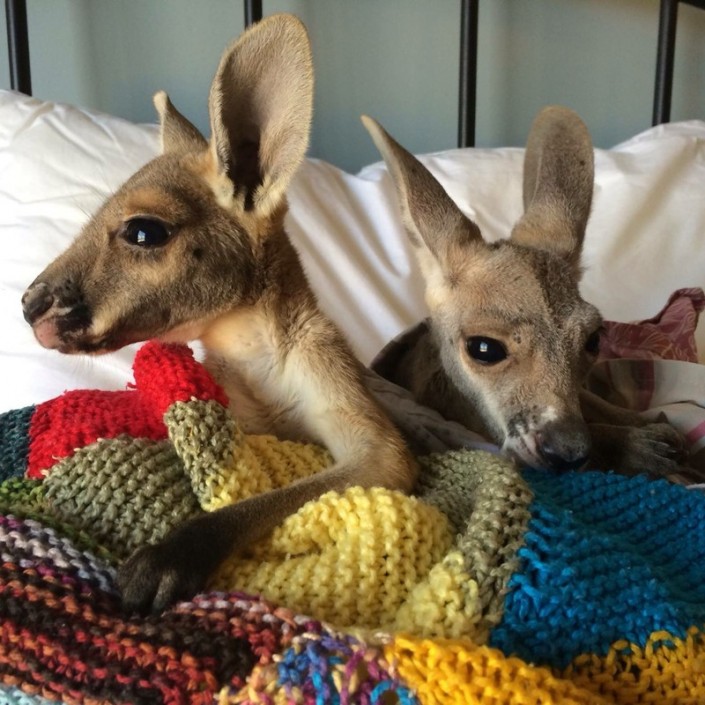 15. Крис сделал сумки для кенгурят из одеял и наволочек, чтобы они никогда не мерзли, чувствовали себя в безопасности и были с ним везде, куда бы он ни шел.