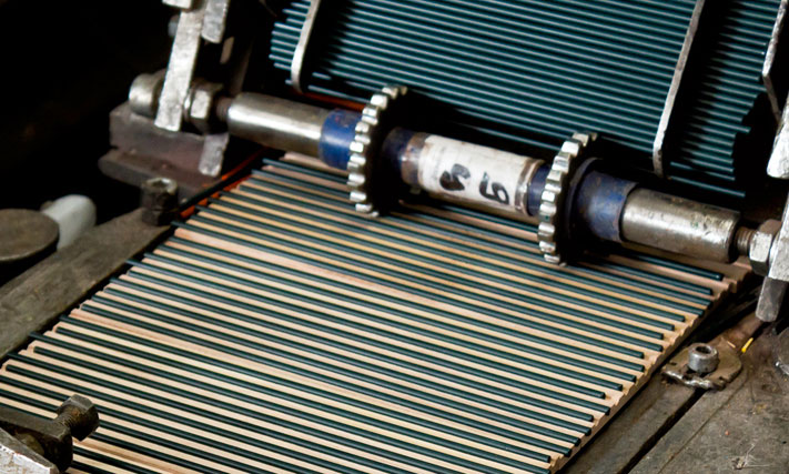 По прошествии этого времени блоки разбирают, укладывают в тележки с указанием всех дальнейших параметров и отправляют на следующий станок, который разделит их на отдельные карандаши.