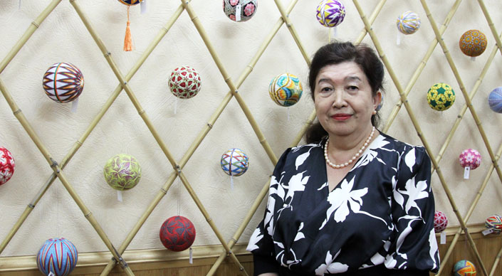 65-летняя Дильнар Абдукаримова увлеклась искусством тэмари около 5 лет назад. Она сама научилась вышивать шары по интернету. Раньше Дильнар Алимжановна занималась научной деятельностью и, выйдя на пенсию, нашла в этом занятии отдушину. Сегодня она дает уроки в японском доме творчества "Ичикава" по тэмари.