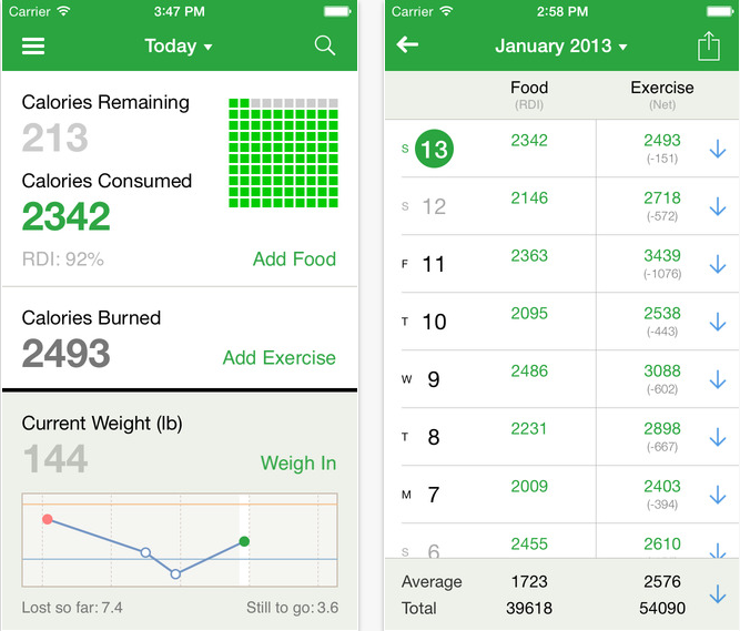 Приложение для того, чтобы найти информацию о питательной ценности пищевых продуктов. Еще там есть пищевой дневник, чтобы записывать, что вы едите, дневник упражнений, чтобы считать калории, которые вы сжигаете, а также коллекция полезных рецептов.
