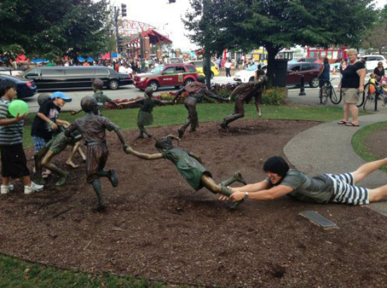 Путешествуя по различным местам, люди делают стандартные снимки с памятниками и скульптурами. Похожие друг на друга фотографии способны вызвать разве что зевоту. Ну кто не фотографировался с Пизанской башней в руке или не целовался на фоне Эйфелевой башни в Париже? Однако находятся и те, кто предпочитает нестандартный ход мыслей скучной заставке на рабочий стол. Главное - хорошее чувство юмора и умение поймать удачный кадр. Adme.ru предлагает пример того, как нужно фотографироваться с памятниками.