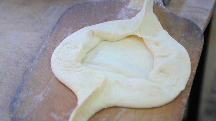 7. Наш хачапури называется очищенный. Это когда с полупропеченного хачапури вилкой снимается тесто под бортами. Но это на любителя.