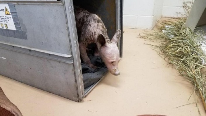 В конце декабря жители Форбстауна, Калифорния, заметили странного зверя, копающегося в помойке. Им оказался облысевший медвежонок барибал (черный медведь). Шерсти эти звери лишаются вследствие недоедания, стресса или других заболеваний.