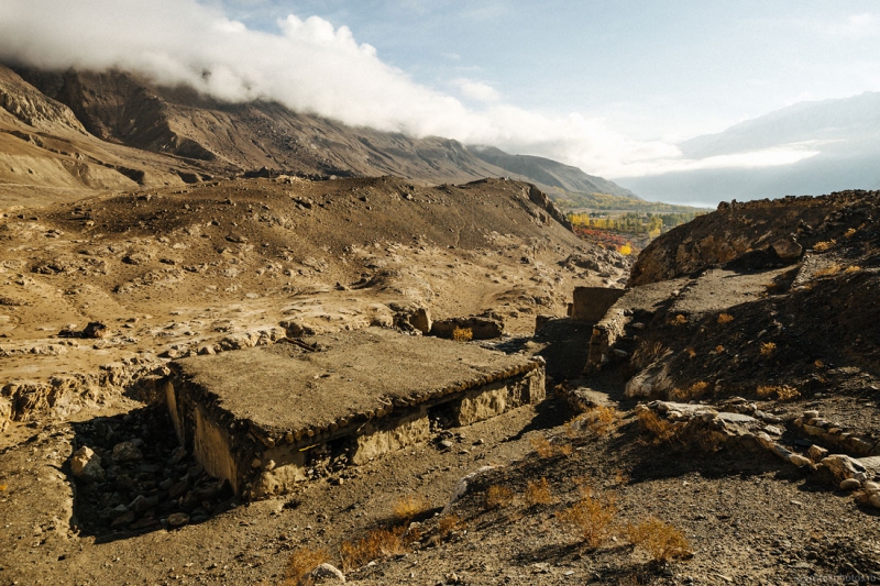 Выше по течению реки, в пятнадцати километрах от Ишкошима, находились развалины старой крепости времен III века. До недавнего времени в развалинах старой крепости стояла погранчасть.
