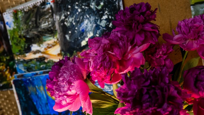 Расписывая холст, Давид объясняет свою тягу к живописи: "У всех художников разные цели, моя же - рисовать, чтобы получать наслаждение".