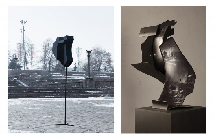 Обскуратон № 8" по форме объединяет скульптуру We Lost художника-минималиста Тони Смита и "Триумфа Астаны" - здания, построенного в стиле сталинского ампира в Нур-Султане. Камера была установлена во дворе алматинских хрущевок, символа утопического жилищного проекта 1960-1970 годов. В итоге обскуратон связал символическое, идеологическое и функциональное в едином тревожном образе.