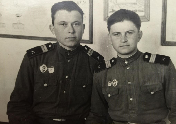 Антанас (слева) на службе в Советской армии. 1949 - 1952 годы.