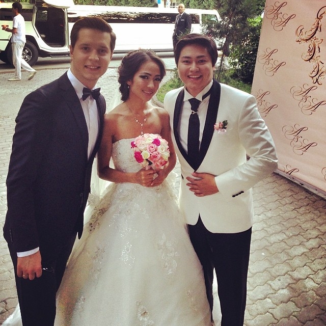 Церемония бракосочетания состоялась 26 июля в Алматы. Молодоженов пришли поздравить родственники, близкие друзья, а также коллеги по актерскому цеху.