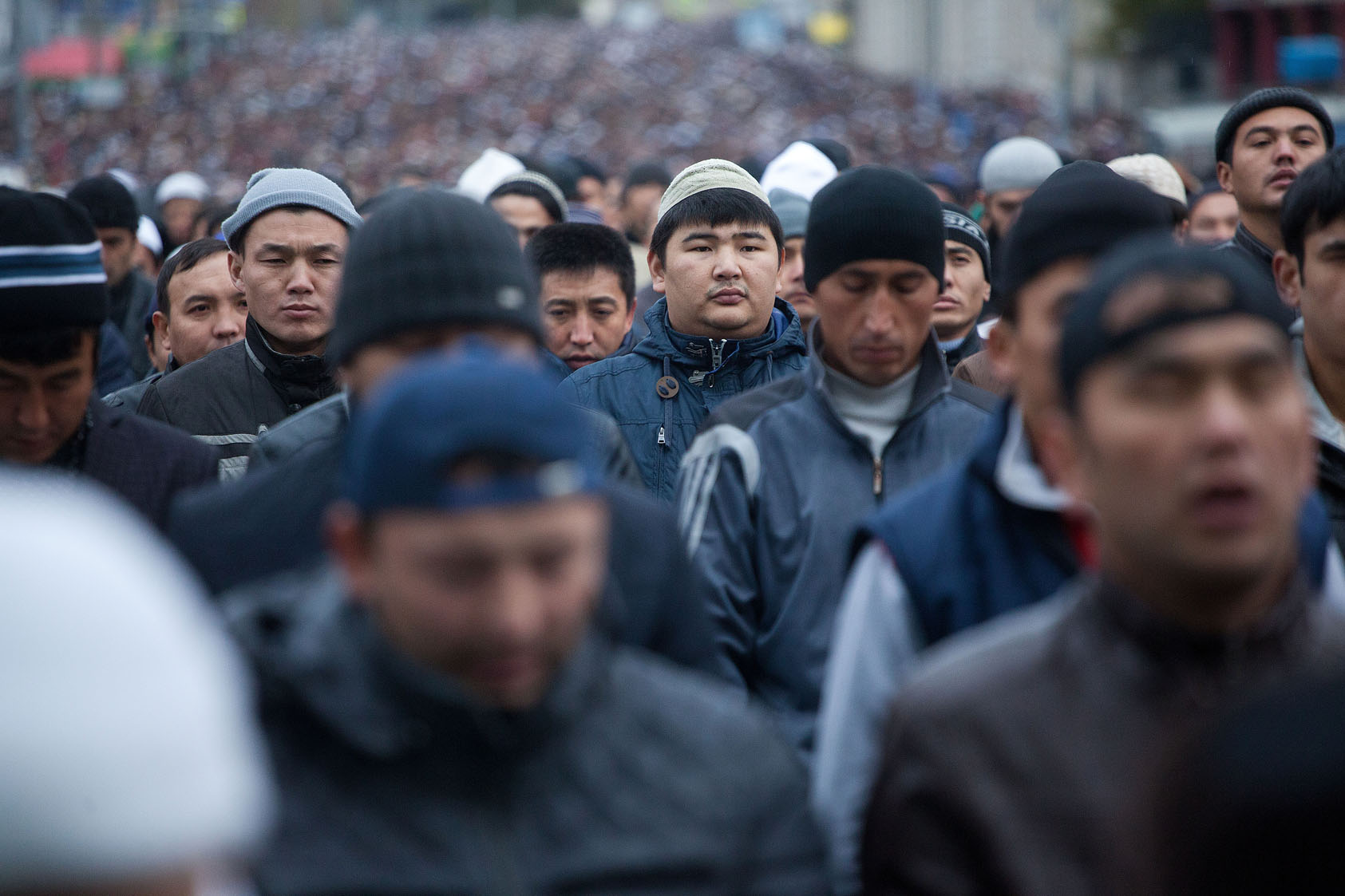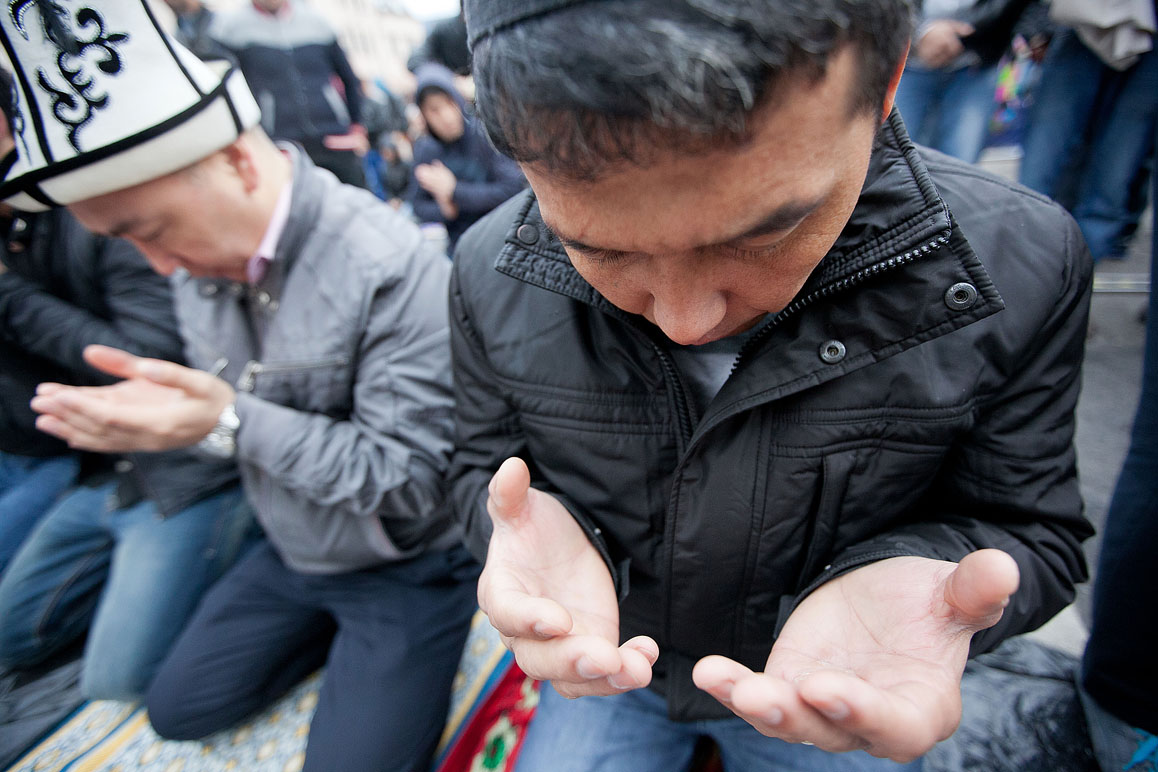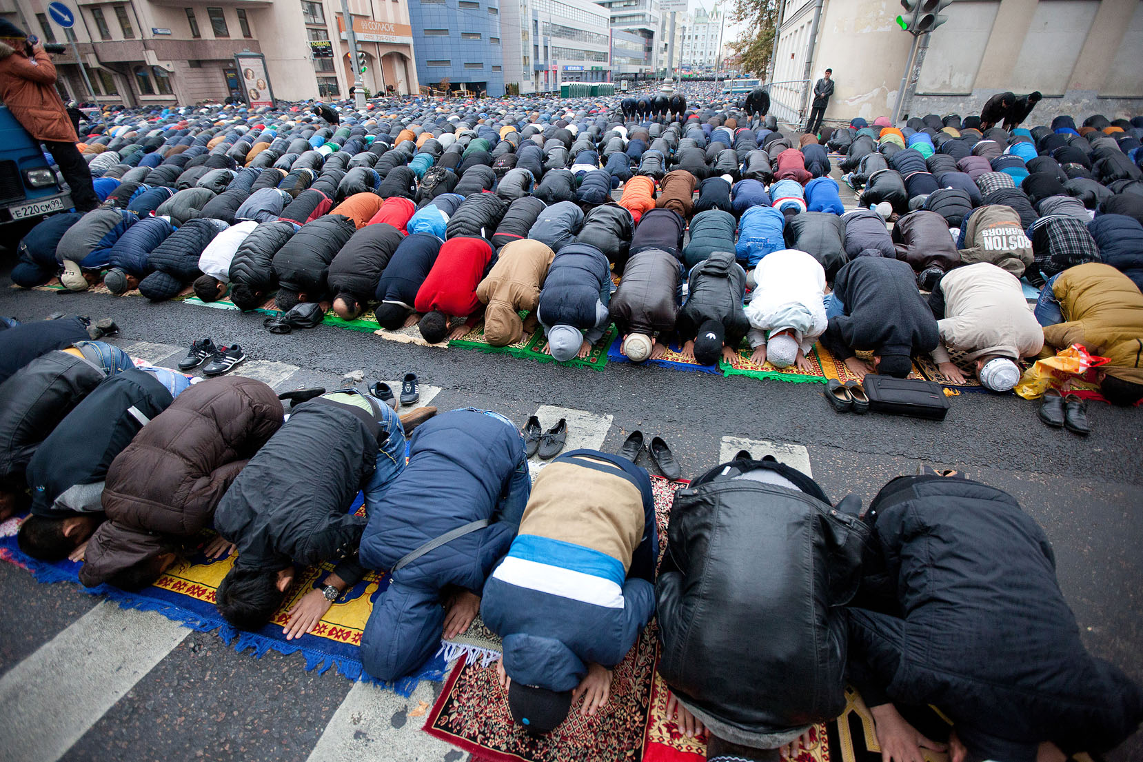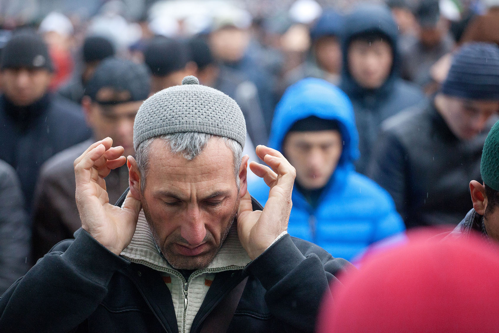 В Москве мусульманский праздник собрал около 130 тысяч человек. Молитвы состоялись в пяти действующих мечетях и на трех дополнительных площадках, выделенных мэрией. Больше всего людей пришли к Соборной мечети - примерно 50 тысяч человек. О том, как это было, - в фоторепортаже Bigpicture.ru