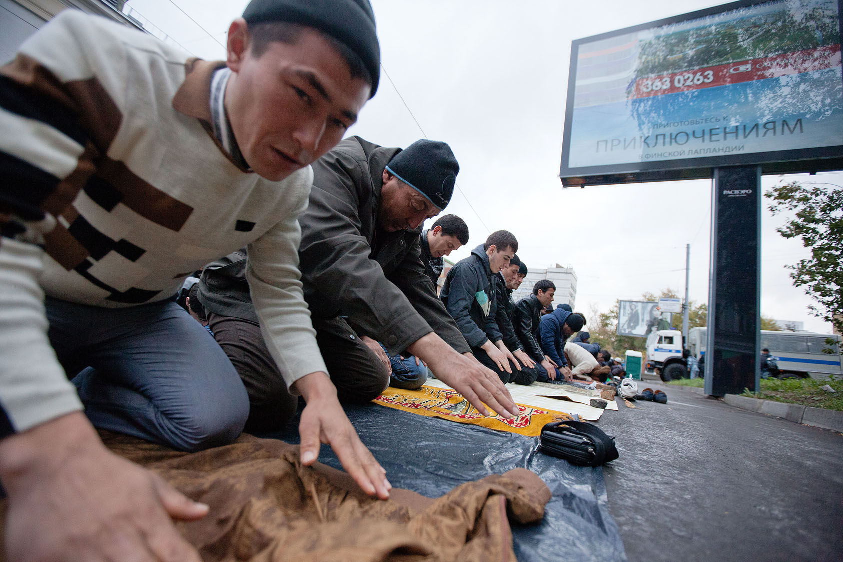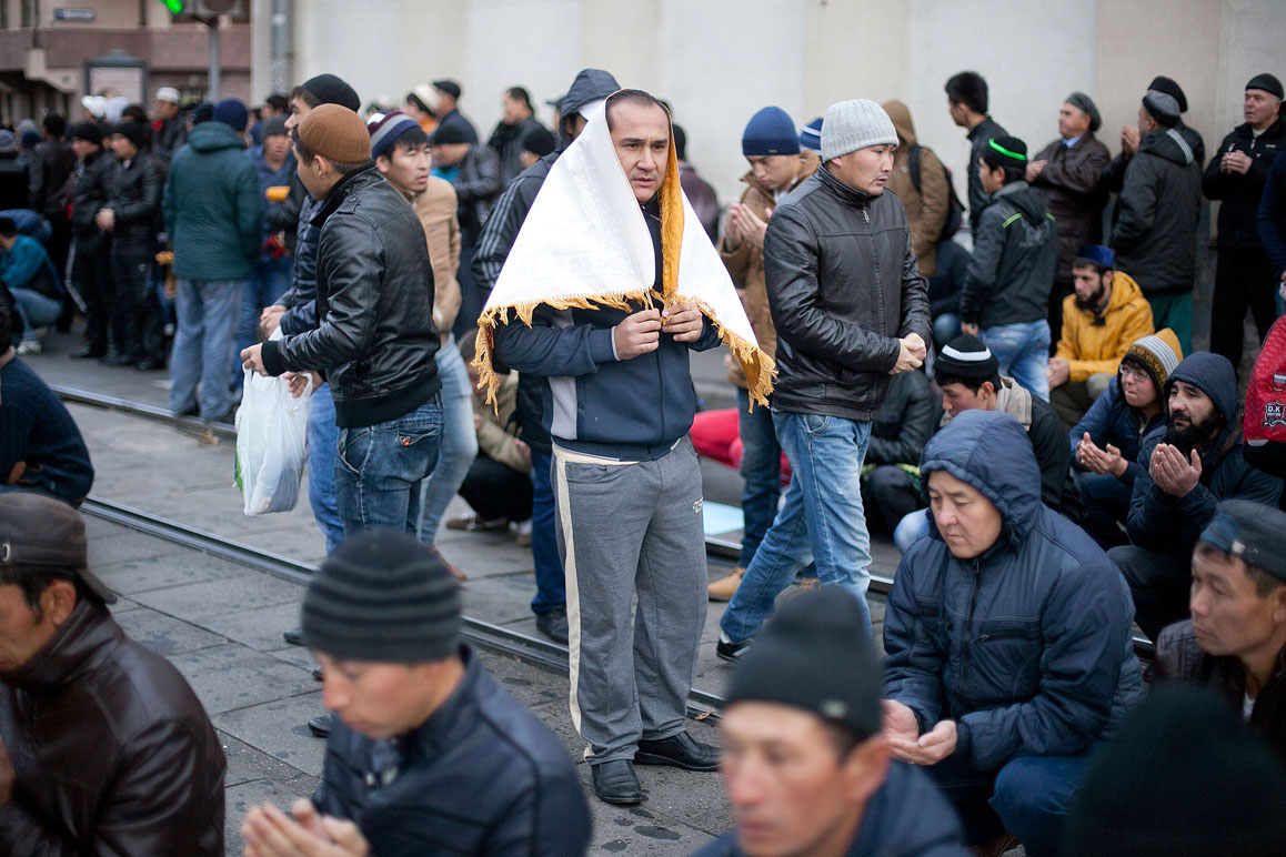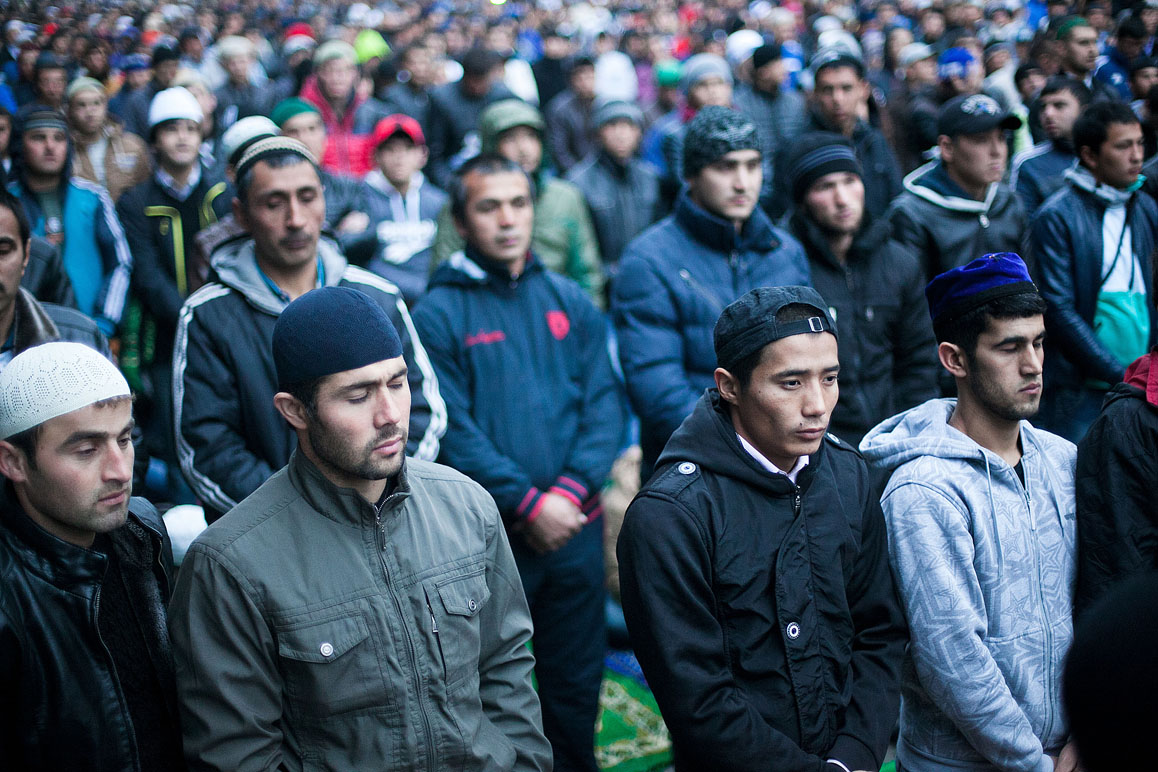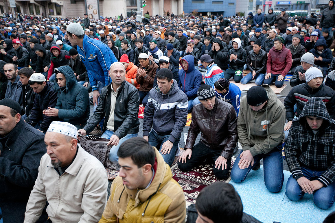 В Москве мусульманский праздник собрал около 130 тысяч человек. Молитвы состоялись в пяти действующих мечетях и на трех дополнительных площадках, выделенных мэрией. Больше всего людей пришли к Соборной мечети - примерно 50 тысяч человек. О том, как это было, - в фоторепортаже Bigpicture.ru