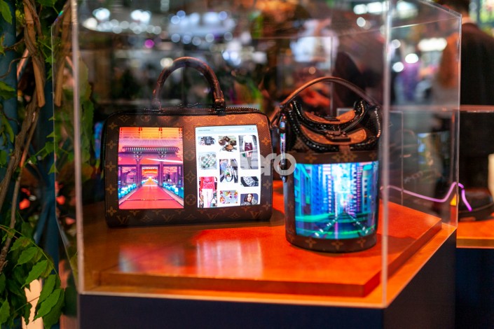 И наконец, самые неожиданные выставочные объекты. Их выбрать непросто среди электровертолетов, роботов, электровелосипедов, автоматических машин для кофе, газированной воды и приборов для измерения давления, автономных инвалидных колясок, а также игровых автоматов, дронов и лавочек для стимуляции полета 3D (надо лечь на нее, надеть маску и раскрыть руки-крылья). Наверное, все-таки это сумки бренда Louis Vuitton с небольшими экранами (размера от телефона до iPad), на которых транслируются мини-клипы.
