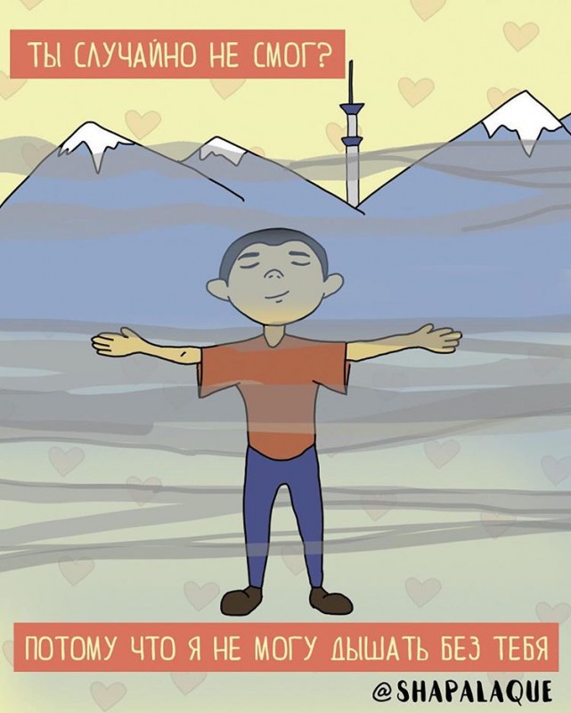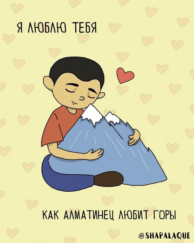 У нас в стране уже есть свой День влюбленных (15 апреля), но многие традиционно отмечают День святого Валентина. И мы в TengriMIX - не исключение. Желаем, чтобы в воздухе и соцсетях всегда витала атмосфера любви, а цветочки с шариками заполняли улицы не только сегодня, но и каждый день. А еще в честь самого романтичного праздника предлагаем вам взглянуть на забавные и оригинальные открытки от казахстанской команды художников Lé Shapalaque Comics, которые вы можете отправить своим вторым половинкам.