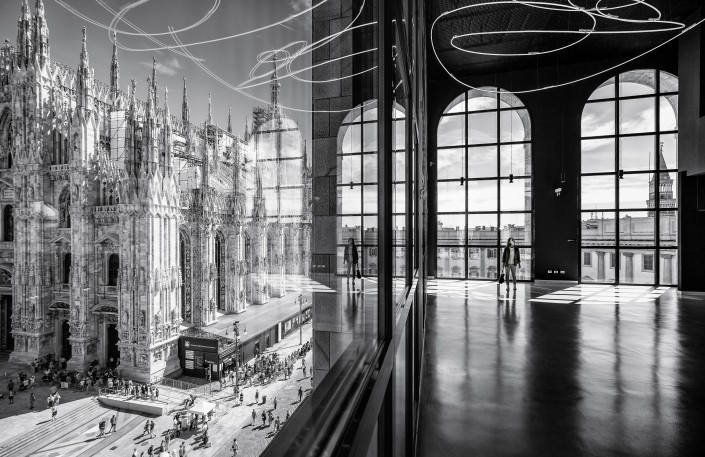 Вид на главную площадь Милана Пьяцца-дель-Дуомо из Музея современного искусства Новеченто. Автор - Марко Тальярино