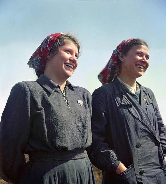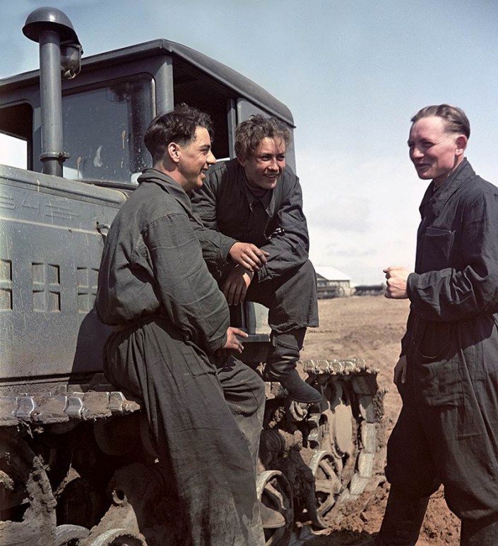 Новые поселенцы тракторной бригады (слева направо): Михаил Антипов, тракторист Иван Занин и Николай Соловьев. Архивные фото из журнала "Огонек"
