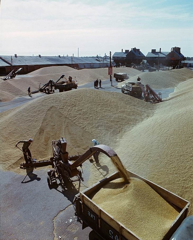 "Объезжая целинные поля, я видел много такого, чего не хотел бы видеть. Когда убирали хлеб, то ссыпали зерно прямо на землю; при перевозке происходили большие потери. Токов не было, складов не было, не хватало вовсе простого брезента. Пшеницу на земле прикрывали кое-как, а чаще всего, к сожалению, вовсе не прикрывали. Рабочей силы не хватало, и поэтому потери были колоссальные", - рассказывал впоследствии Никита Хрущев.
