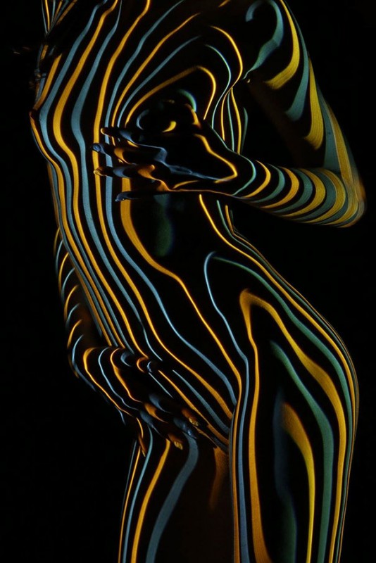 Парижский фотограф Дани Оливье приглашает в качестве моделей танцовщиц, использует прожекторы в темной студии, чтобы "нарядить" их в разноцветные световые линии и геометрические тени, превращая тела в сюрреалистические произведения искусства.