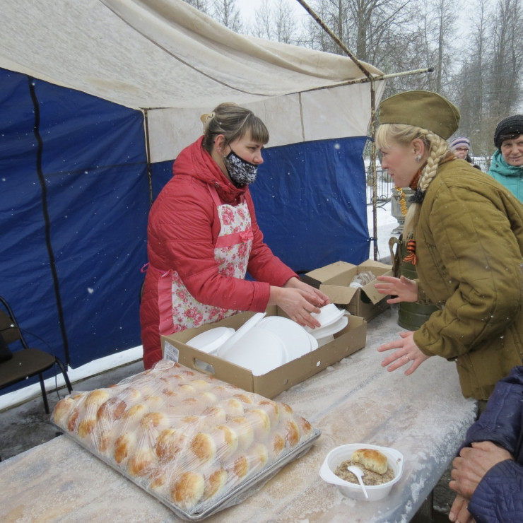 После выступления на митинге официальных лиц, руководителя нашей делегации, а также студентов были проведены минута молчания, возложение венков и цветов. В составе нашей делегации был имам Московской соборной мечети Марат-хазрет Аршабаев, он прочитал молитву памяти героям ВОВ. Далее были организованы полевая кухня с солдатской кашей и праздничный концерт в честь 78-й годовщины освобождения Оленинского района от фашистских захватчиков в местном доме культуры.