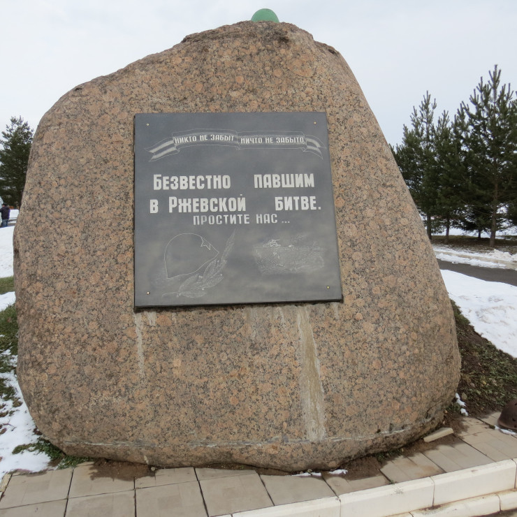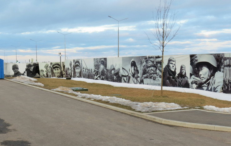 Не доходя до памятника, можно увидеть стальные горы с изображением советских солдат. Подойдя ближе, осознаешь, что эти изображения собраны из тысячи и тысячи имен солдат, павших подо Ржевом. Здесь погибли более миллиона советских солдат.