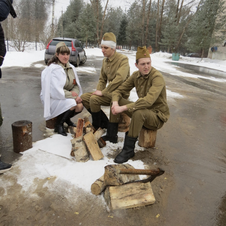 В поселке нас тепло встретили представители администрации Оленинского муниципального округа: Татьяна Богданова, начальник управления культуры Оленинского муниципального округа, Александр Гоздинский, командир Оленинского поискового отряда "Орел", и Анжелика Мельникова, методист культурно-досугового отдела управления культуры.