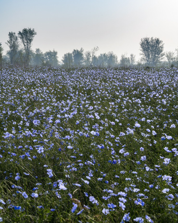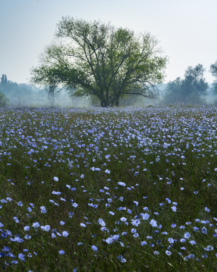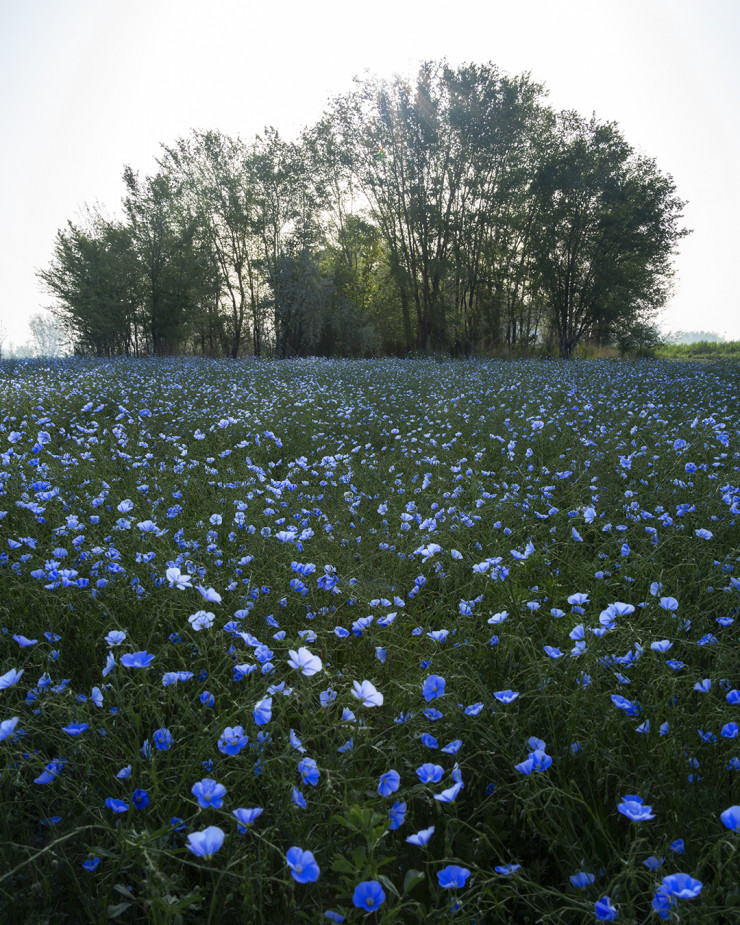 Фотограф удивлен, почему лен пока не пользуется такой популярностью у любителей фотосессий, как маки. Хотя цветение очень красивое. Это некий противовес макам: если они такие яркие и контрастные, то лен, наоборот, спокойный, с нежно-голубым оттенком.