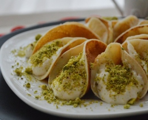 В нашем, более "европейском" варианте, катаеф - это десерт, представляющий собой дрожжевые блины со сладкой начинкой. Последней могут служить - заварной крем, взбитые сливки, творог, мед, шоколад… Все, на что хватит фантазии сладкоежки.