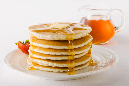 За океаном панкейки - непременная составляющая завтрака. Американцы и канадцы настолько любят свои блины, что многие сети магазинов быстрого питания включили их в меню. Подают панкейки с арахисовым маслом и кленовым сиропом.