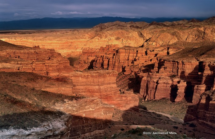 Долина Замков. Казахстан. Каньон входит в территорию Чарынского национального парка. Каньон располагается в 220 км восточнее Алматы. Чарынский каньон - памятник природы, сложенный из осадочных пород, возраст которых составляет около 12 миллионов лет. Высота отвесных гор каньона достигает 150-300 м. Наиболее интересным местом для туристов является так называемая Долина замков, длина которой составляет около 2 км, ширина - 20-80 м.