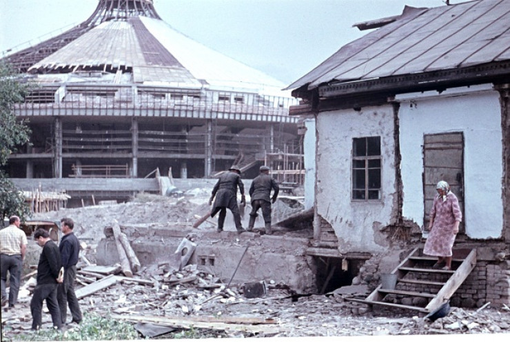 Строительство цирка в Алма-Ате, 1971 год. © Владимир Шургаев