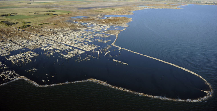 Один аргентинский город в провинции Буэнос-Айрес уже побывал в статусе Новой Атлантиды - это Лаго-Эпекуэн. В течение 25 лет он находился под водой, оказавшись затопленным из-за прорыва плотины на местном озере Эпекуэн в 1985 году (этому обстоятельству предшествовали обильные дожди, наблюдавшиеся с 1980 года). На момент катастрофы в городке проживало около 5000 человек, его любили туристы, приезжавшие к соленому водоему на отдых. К счастью, город затоплялся постепенно, и люди успели покинуть свои дома. В 1993 году Лаго-Эпекуэн лежал на глубине 10 метров и имел славу аргентинской Атлантиды. Однако постепенно вода высыхала, и уже к 2009 году город снова стал обитаем - в него вернулся местный старожил Пабло Навак, которому сейчас 85 лет и который до сих пор остается единственным жителем этого разрушенного населенного пункта. Восставший из воды город был переименован в деревню Вилья-Эпекуэн и является туристической Меккой.