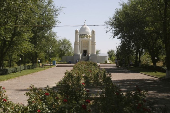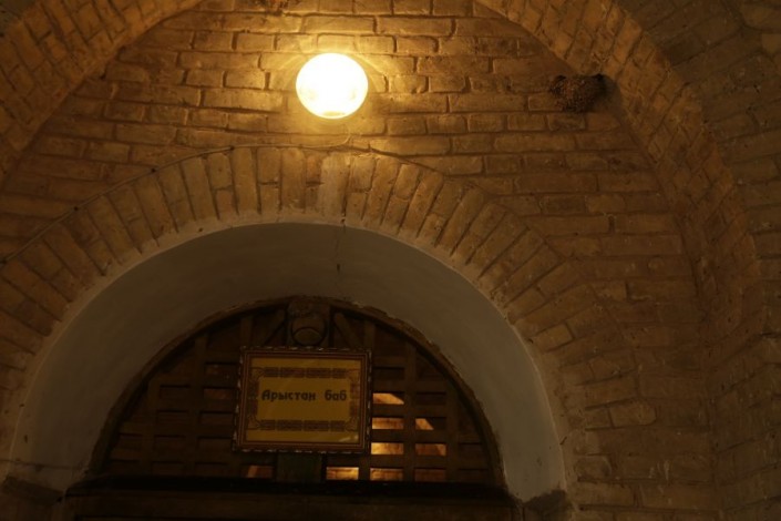 Затем участники фестиваля двинулись к мавзолею Арыстан-Баба. По преданию, святой Арыстан-Баб был духовным наставником и учителем Ахмета Яссауи.