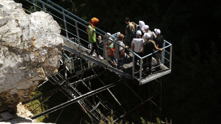 Прочитав молитву у могилы "Святой матери", участники фестиваля направились в подземную пещеру "Ак Мечеть" в Байдибекском районе.