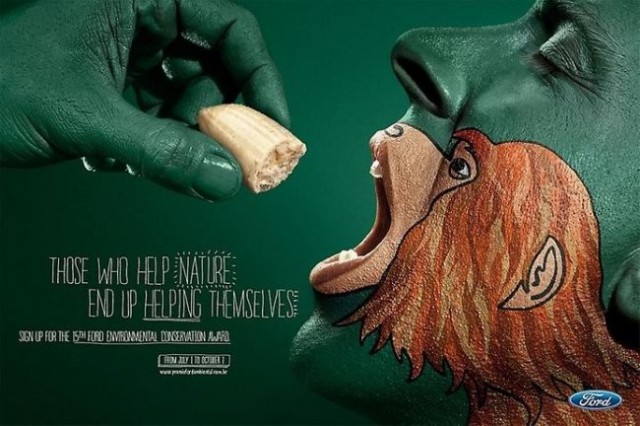 Эта реклама получила пятнадцатую премию в области защиты окружающей среды: "Помогая природе, ты помогаешь себе!"