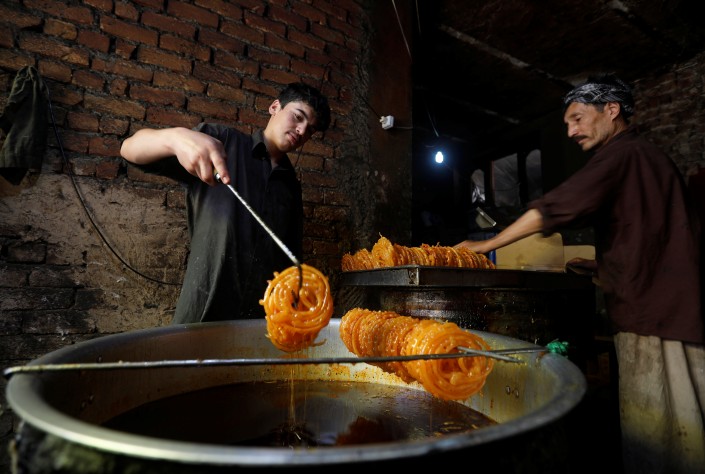 Афганские мужчины делают традиционные сладости для праздничного стола. Кабул, Афганистан.