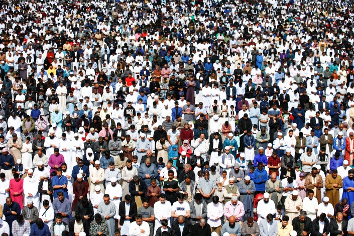 Около 140 тысяч британских мусульман на праздничном намазе в честь окончания поста Рамазан. Бирмингем, Великобритания.