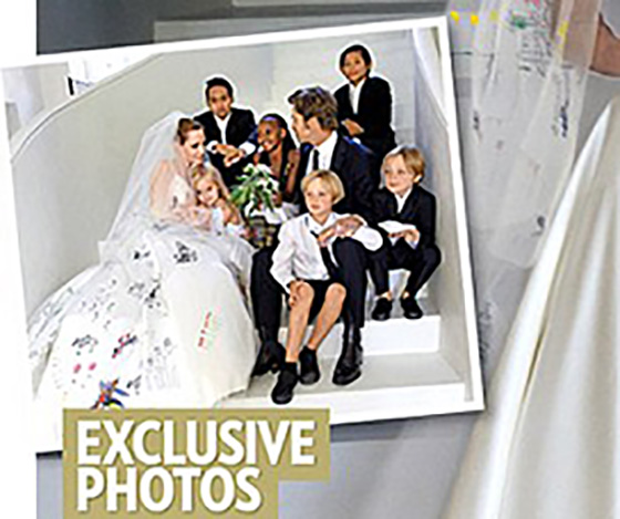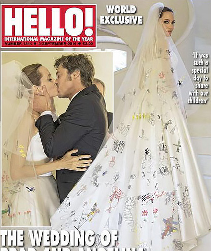 Американские журналы People и Hello! разместили на своих обложках первые фотографии свадебного платья голливудской звезды Анджелины Джоли, которая наконец-таки вышла замуж за актера Брэда Питта. Напомним, вместе эта пара уже десять лет.