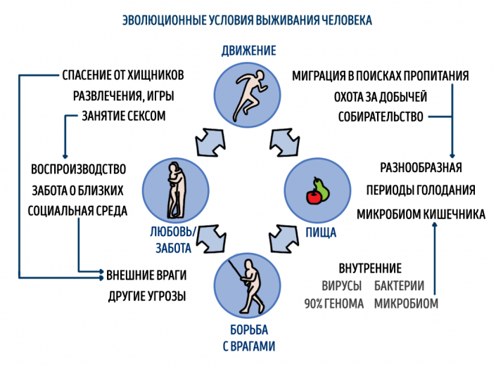 Залогом выживания человека с первых времен было постоянное движение в поисках разнообразных источников пропитания, отвечающих физиологическим потребностям человеческого организма. Конечно, при условии достаточного воспроизводства потомства. В борьбе с внешними и внутренними угрозами немаловажны были забота и взаимопомощь. Эти принципы в течение многих веков были основополагающими для человека. В современном мире они получают новое воплощение. Отличие лишь в том, как именно они реализуются сегодня.