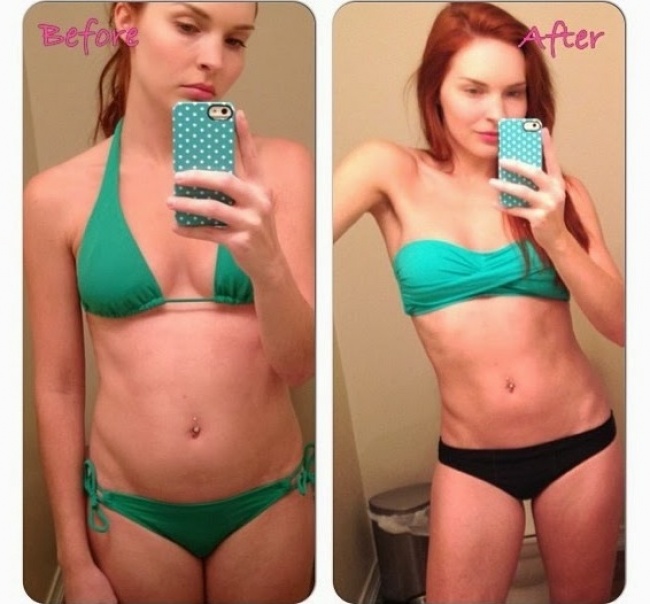 25-летняя тренер по фитнесу Mel М из Австралии опубликовала в своем блоге два снимка в стиле "до" и "после", которые демонстрировали успешный результат ее работы над своими формами, пишет AdMe.ru. На одной фотографии девушка с явно не идеальной фигурой, тогда как на другой она заметно похудевшая. Несмотря на то, что таких снимков в Интернете немало, именно этот стал мегапопулярным.