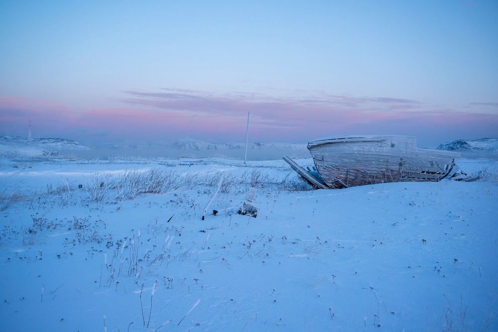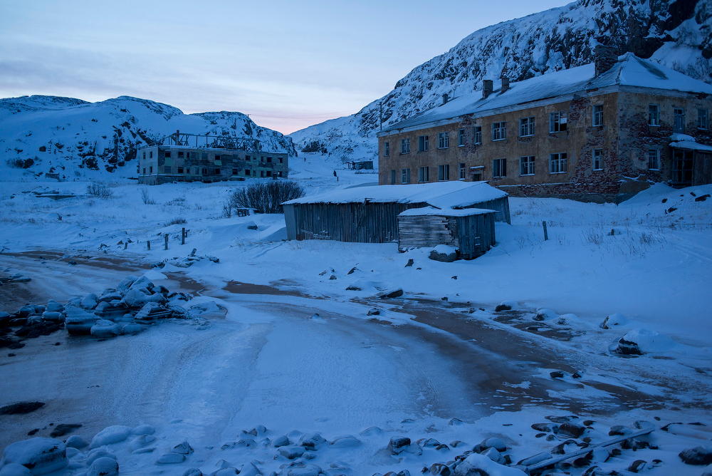 Если не обращать внимания на старые и разрушенные дома, тут очень красиво. Природа по-северному красивая: много чистого белого снега, тихо, суровые низкие горы, от моря исходит пар. День короткий и солнца пока не видно, но цвета неба очень чистые: от глубокого индиго до нежного розового и ярко-оранжевого. Ночью даже в городе хорошо видны звезды. И полярное сияние.