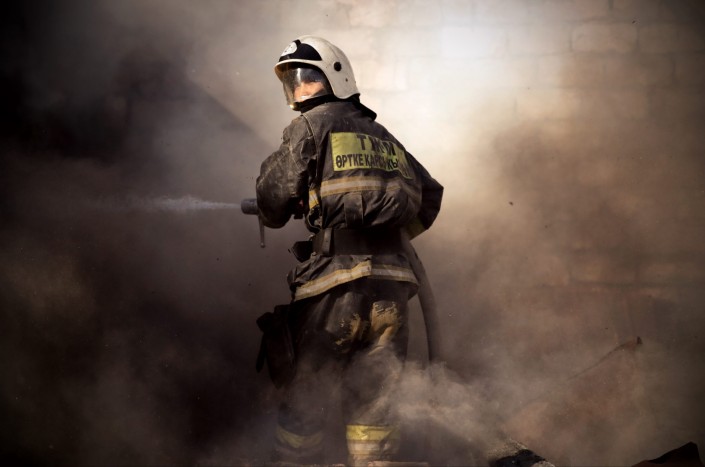 "Во время пожара жилого дома. После того, как рухнула крыша, пожарный обернулся на мгновение". Автор - Максим Стадниченко