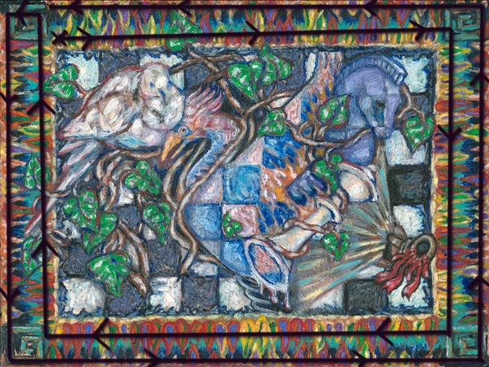 Автор картины и 1FLAMEN6 кратко пересказали, как можно разгадать спрятанную головоломку: "На картине закодирована строка двоичного кода, символы которой соответствуют одному из огоньков в пламени по краям холста. Цвет и форма каждого определяли кусок из четырех символов, которые дополнял код, спрятанный в лентах в каждом из углов. Затем программист использовал рукописную программу на Java, которая перевела цепочку нулей и единиц в код биткоин-кошелька".