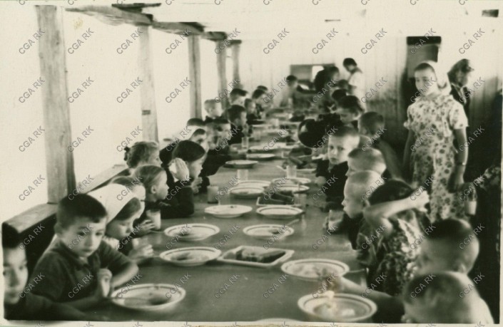 Завтрак в пионерском лагере Кустанайского обкома профсоюза медработников, 1956 год. Из фондов Центрального государственного архива Республики Казахстан