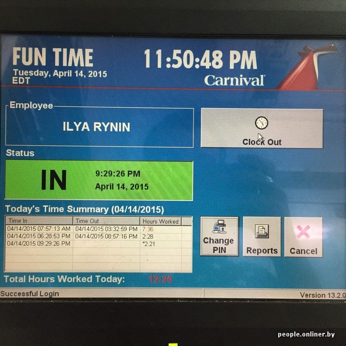 Все часы работы либо отдыха заносятся в специальные машины fun time