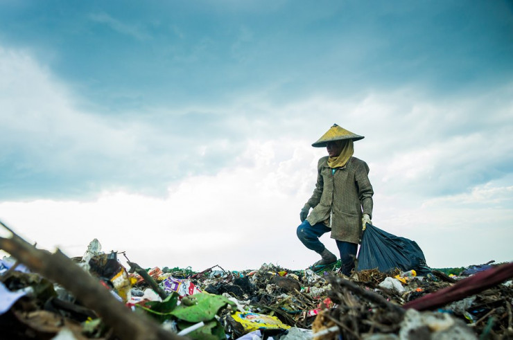 "Ежедневно этот работник свалки поднимается по горам мусора, чтобы собрать пластик среди бытовых отходов. В день он собирает до 50 килограммов пластика и продает его за три доллара", - делится автор фотографии.