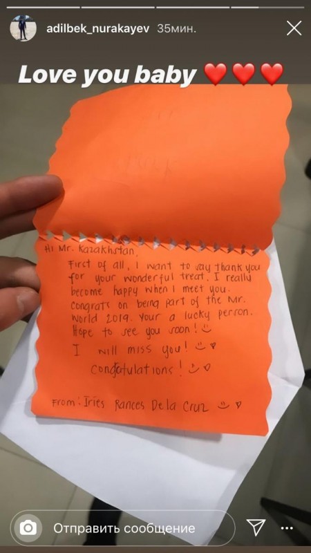 Казахстанец признался, что самой большой неожиданностью стало письмо от девочки из приюта, которую в рамках конкурса он навещал. Она поблагодарила его за все, в частности за сувенир из Казахстана, и отметила, что будет скучать по нему.