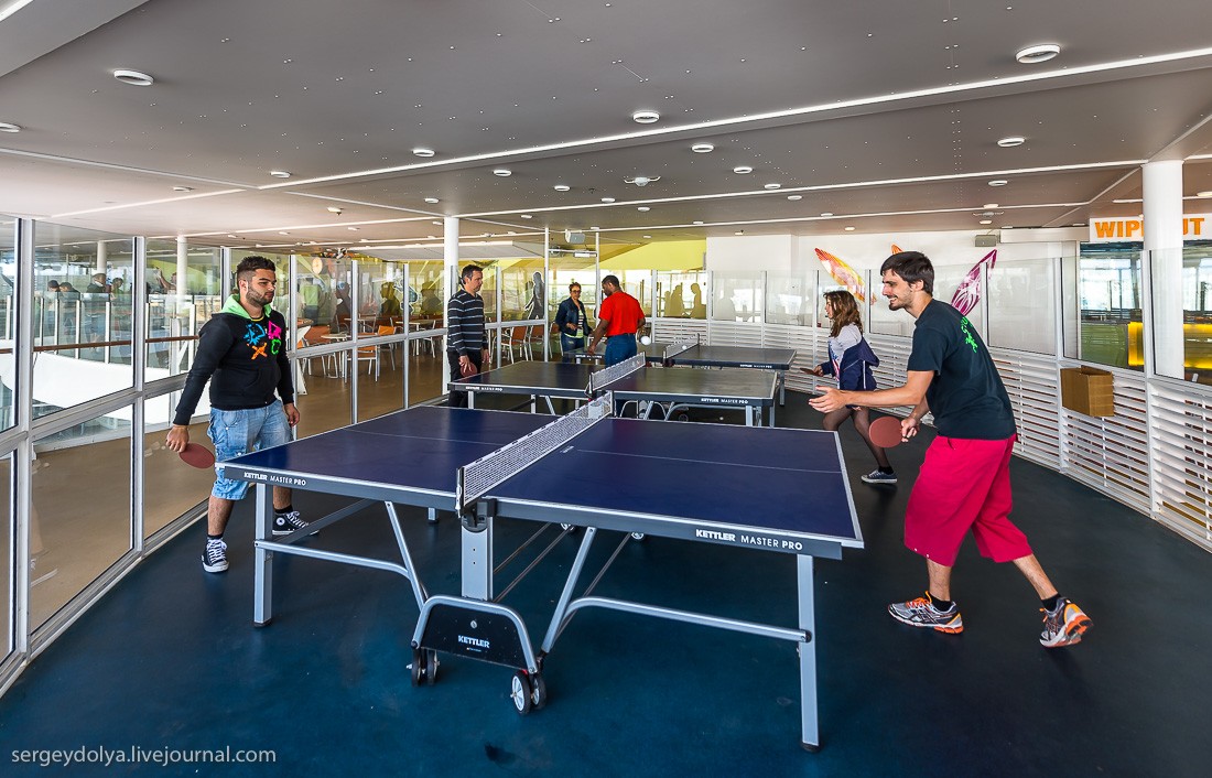 Есть несколько зон со столами для пинг-понга.