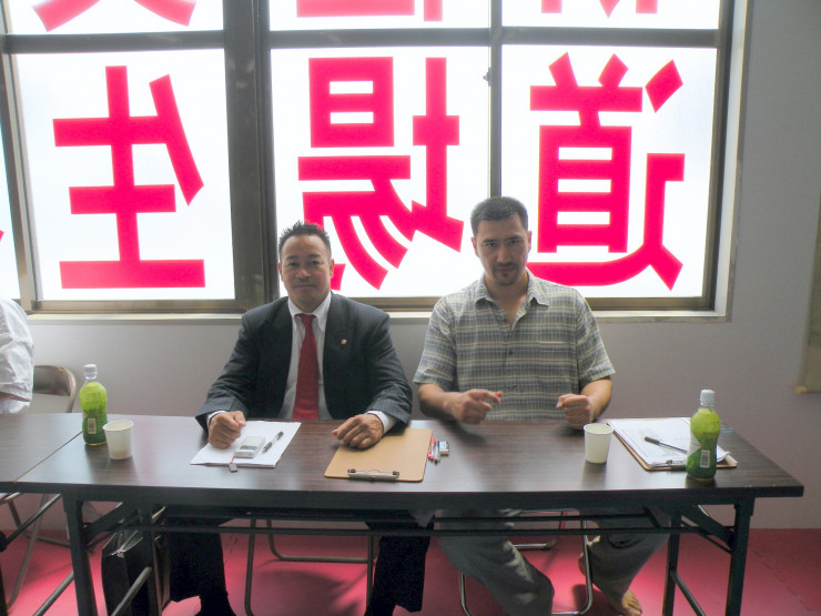 На экзаменах с директором шин-кекушинкай каратэ Кенжи Мидори (Kenji Midori)  в Фукуока, Япония