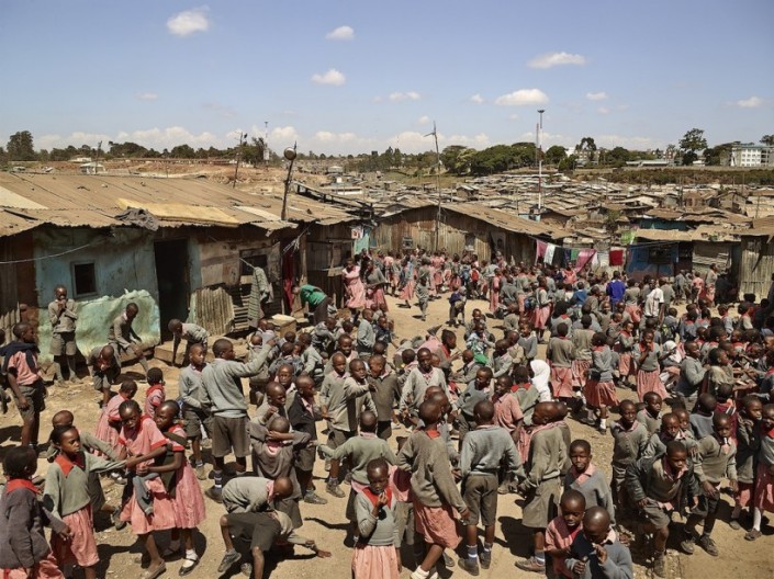 У школы, возможно, хорошая посещаемость. Радует, что столько детей стремятся к знаниям. Трущобы Матаре, Найроби, Кения. Фото с сайта supercoolpics.com