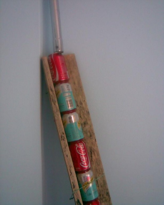 В днище каждой баночки вставляется пробойник (или гвоздь) и делаются аккуратные отверстия, хотя можно и просверлить дрелью. Затем вставляется суппорт и искажается в соответствии с рисунком.