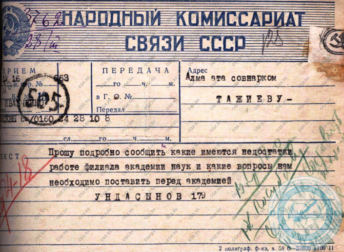 Из фондов ЦГА МКС РК.