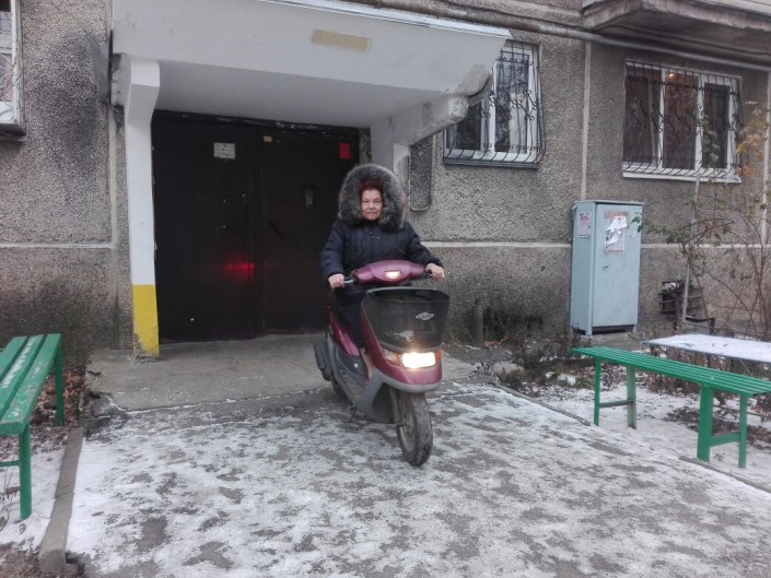 За 20 лет женщина сменила уже три мотороллера. Последний сыновья купили ей в 2005 году. Предыдущие два угнали. "Сейчас я его никак не цепляю. Потому что меня, в принципе, знают и алкоголики, и наркоманы. И знаете, в целом я, наверно, лишь раз слышала упрек в свой адрес вроде "такая старая и на мопеде". Ко мне все относятся с большим уважением. Даже постовые милиционеры отдают честь".